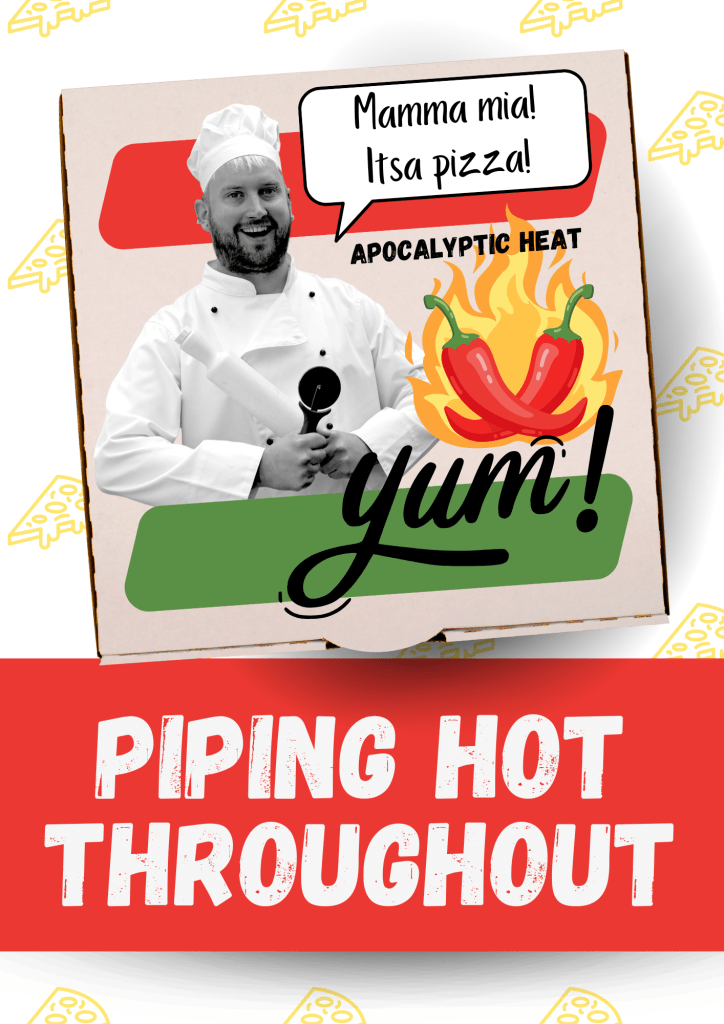 Poster design for comedy film, Piping Hot Throughout. The concept was to deliberately misrepresent the film: imply that it’s an upbeat story about a chef, when it’s absolutely not!